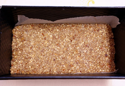 Não consegui bem o rácio de macronutrientes que pretendia (30:40:30) mas andei lá perto: 30:34:36. Mesmo assim o resultado foi uma barra deliciosa bem macia e ao mesmo tempo crocante!